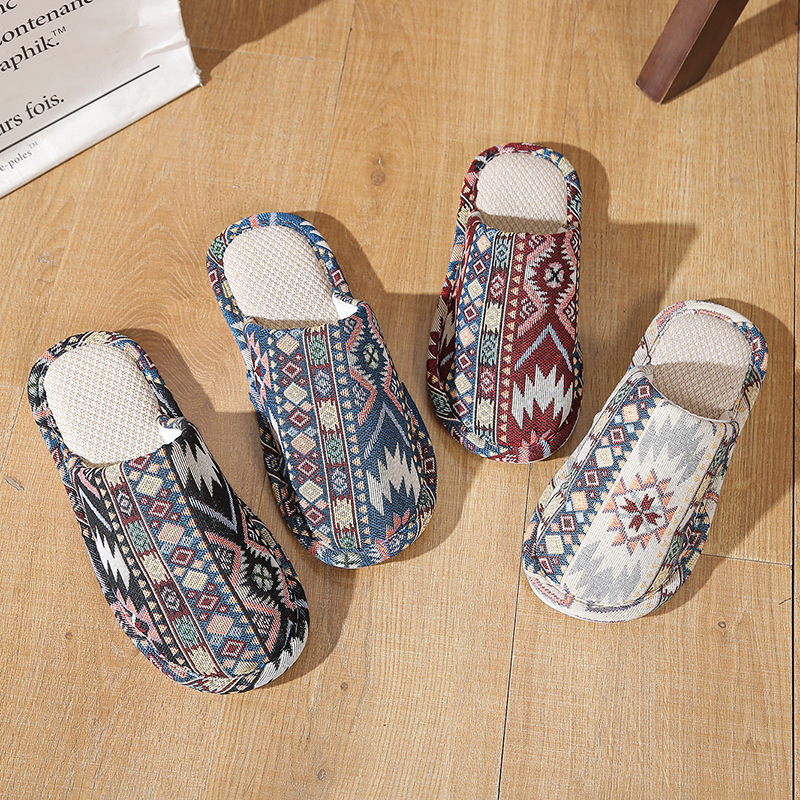 新款四季包头民族风复古棉拖鞋情侣女士家居木地板春秋拖鞋批发
