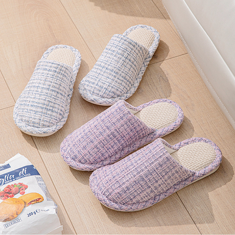 秋冬の日本式住宅用亜麻カップル室内床月子男女滑り止めソフト底綿スリッパ卸売り