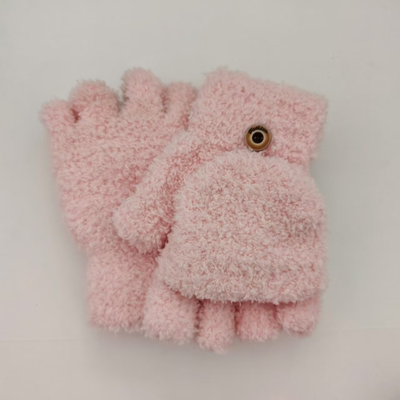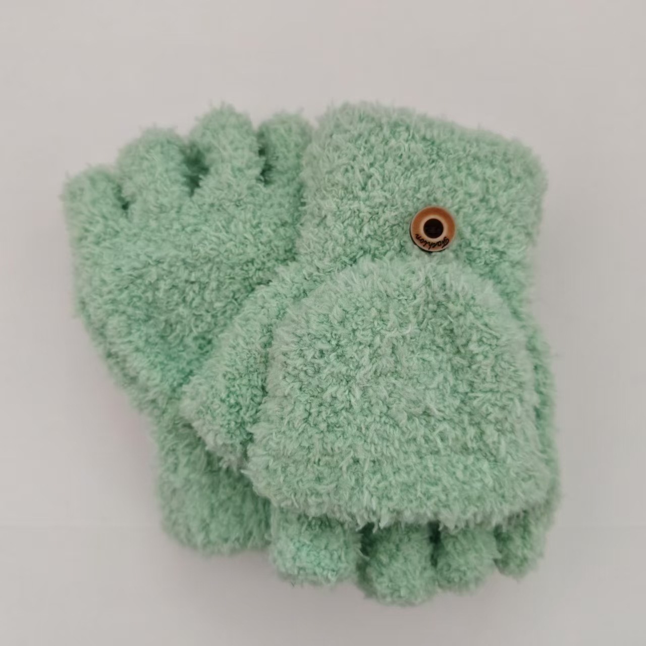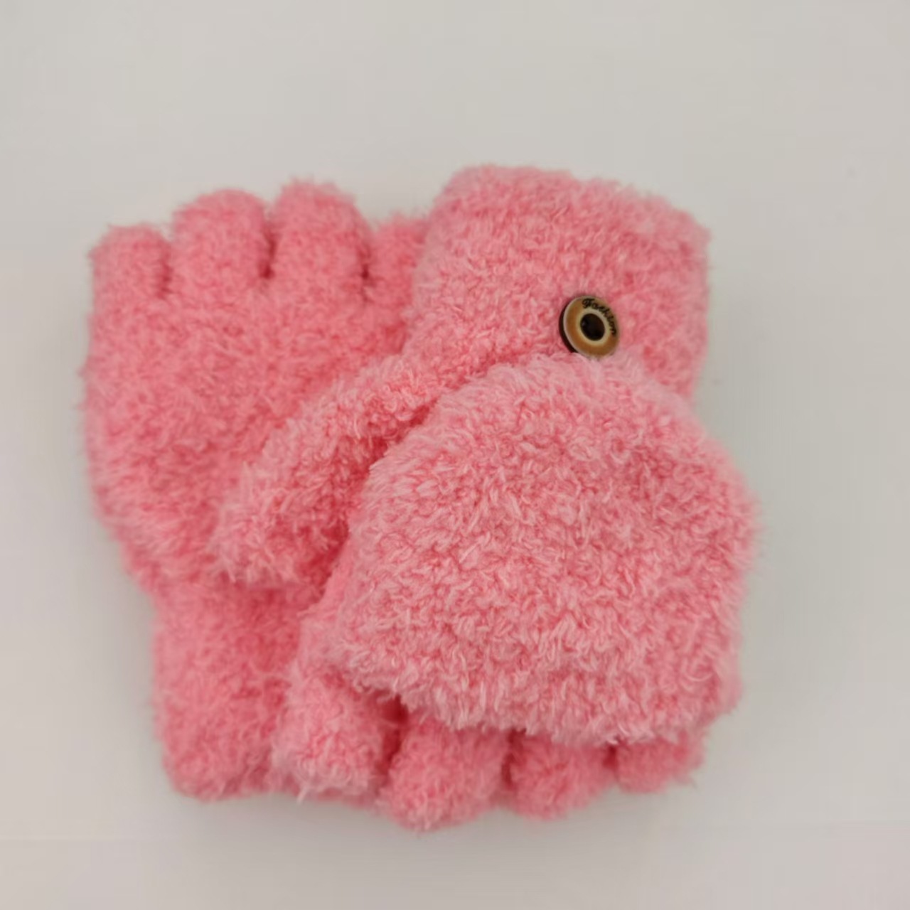 纯色学生孩童半指加厚写字骑车打字抗寒翻盖手套珊瑚绒女防寒保暖
