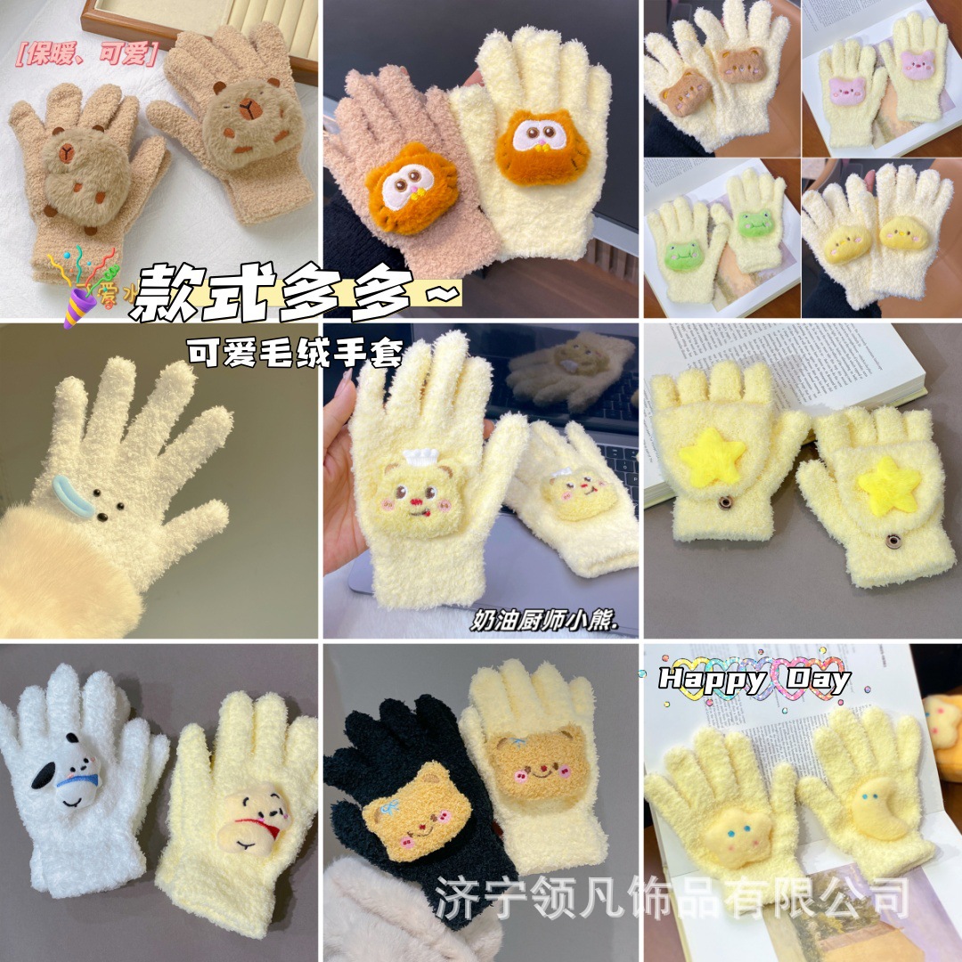 インスタ映えする粉ミルク星猫カピバラサンゴベルベット手袋、暖かい学生用冬用アウトドアサイクリング手袋、親友向け
