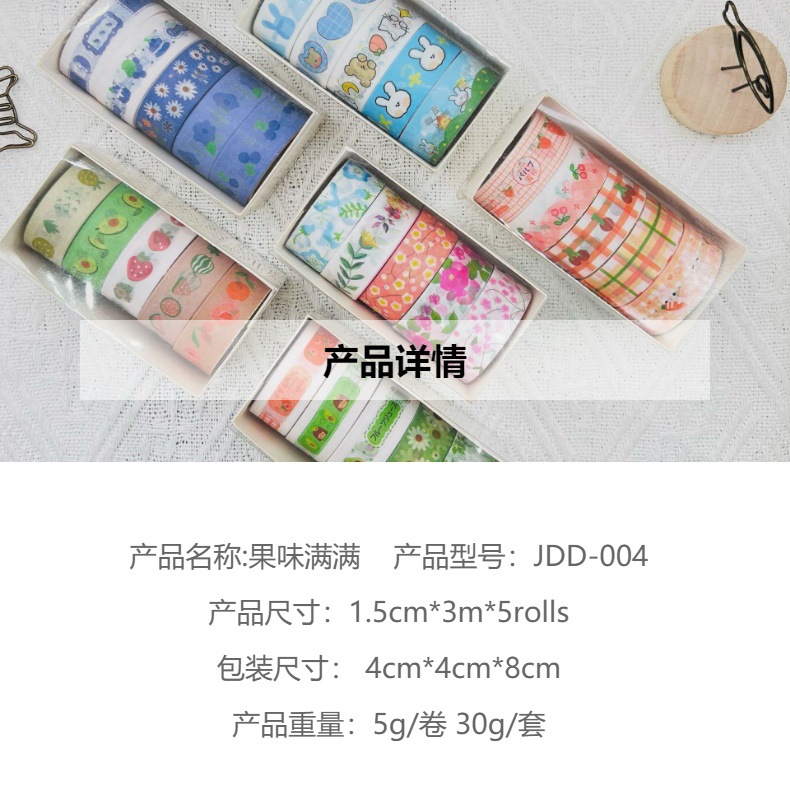 手账胶带草莓奶芙系列和纸胶带套装5卷手账装饰素材跨境现货批发