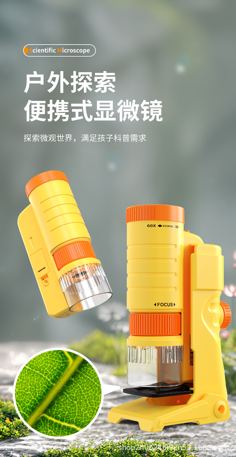 子供の携帯手持ち60X-200X顕微鏡科学実験セット科教益智玩具小学生専用