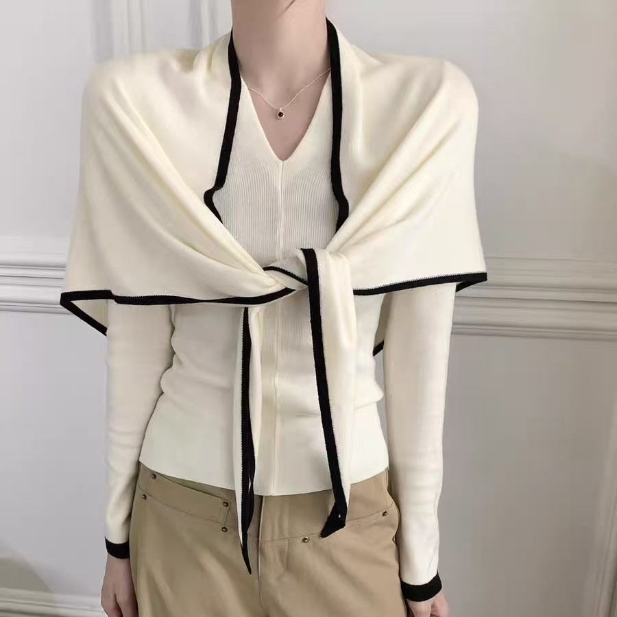 高端小香风100%wool纯羊毛高级感外搭三角披肩女秋冬纯色围巾两用