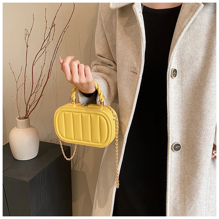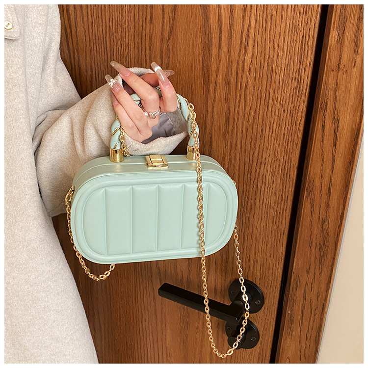 クロスボーダーの流行の質感の縦紋編みのハンドバッグの女性2023百合の肩の斜め掛けのチェーンの小さい方の箱の包み