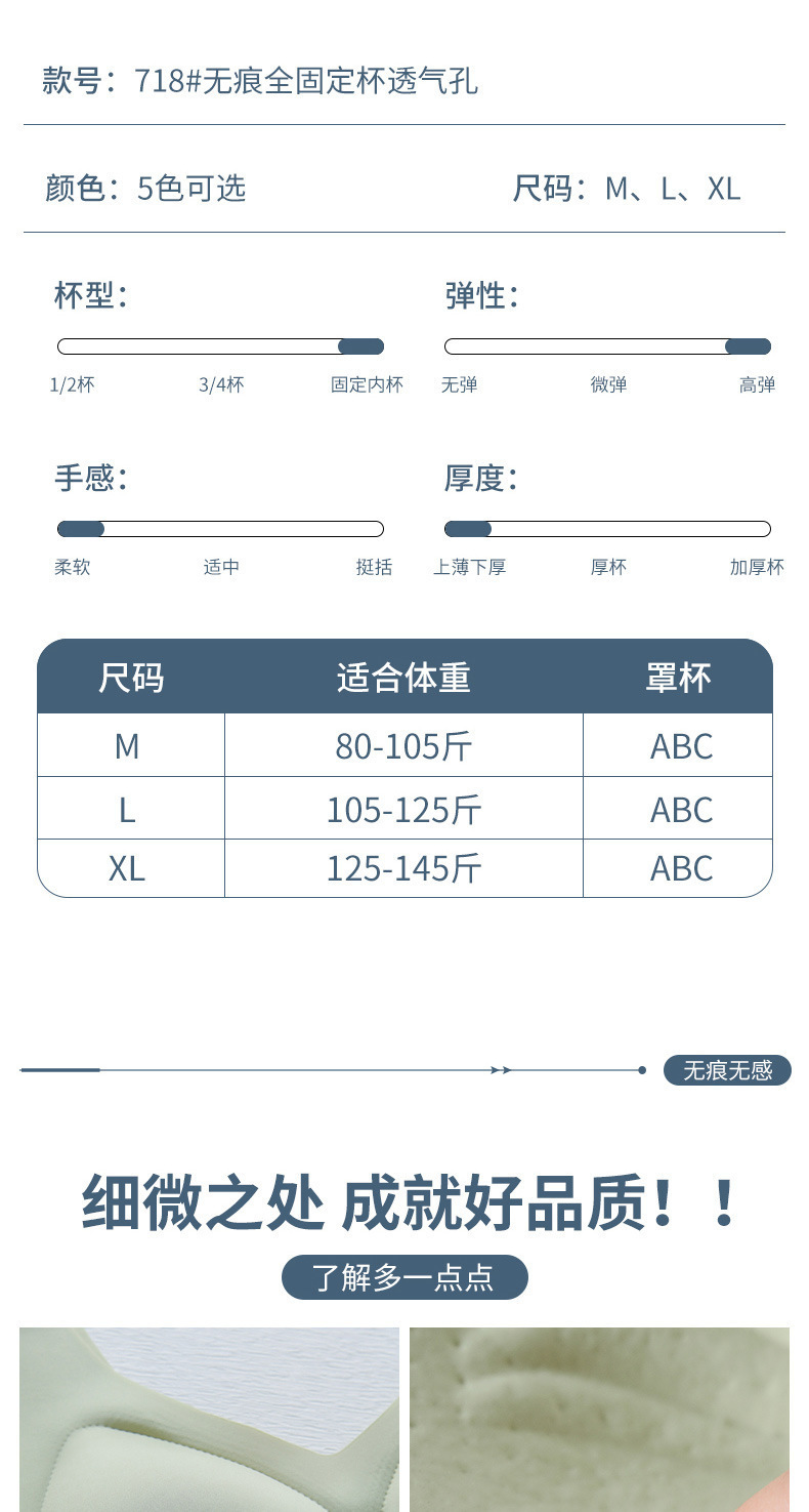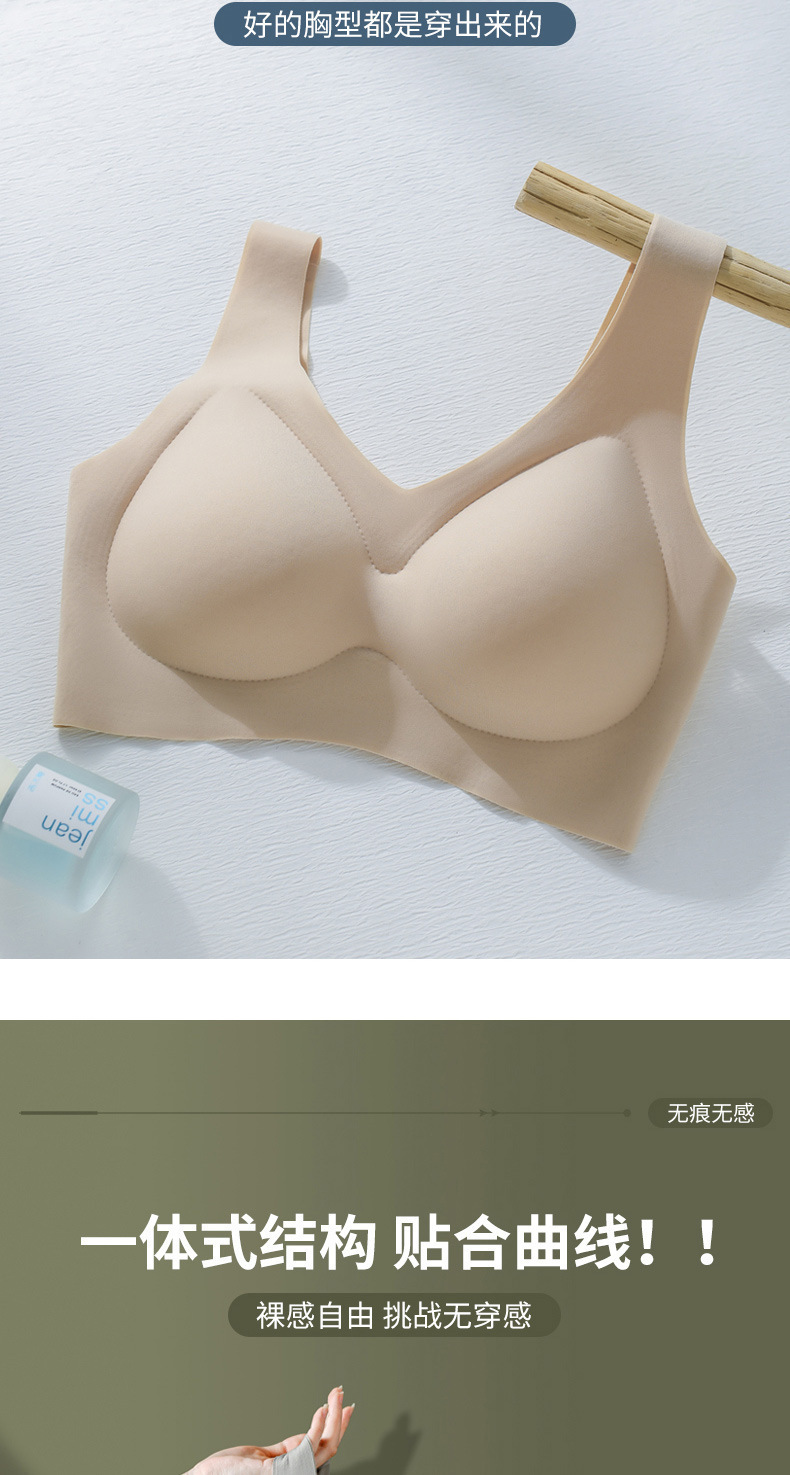 春新款U型美背固定杯内衣女裸氨无缝美背无钢圈内搭裹胸薄款夏季