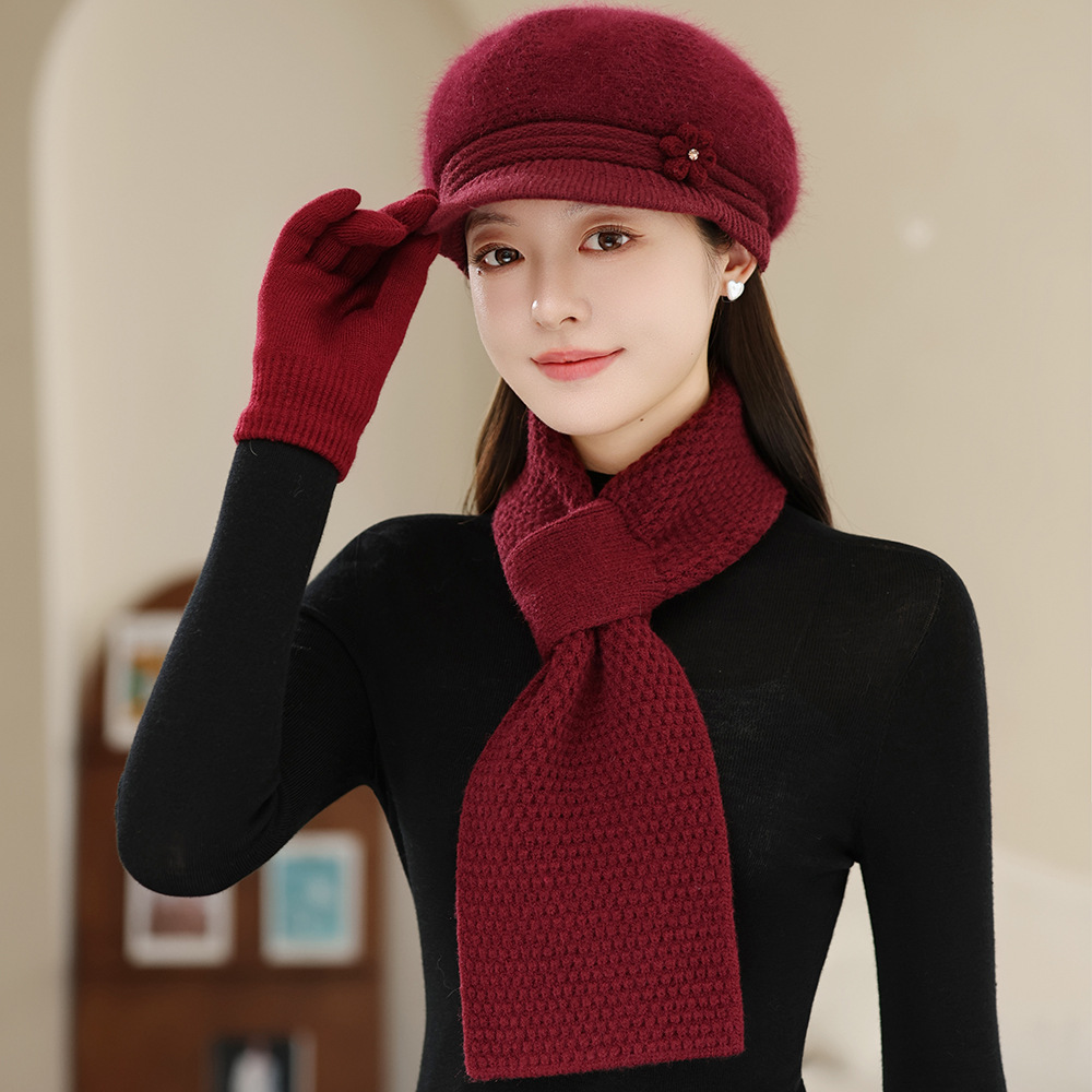 冬季女爆款老年短檐妈妈帽子洋气奶奶毛线棉帽围巾手三件套老太帽
