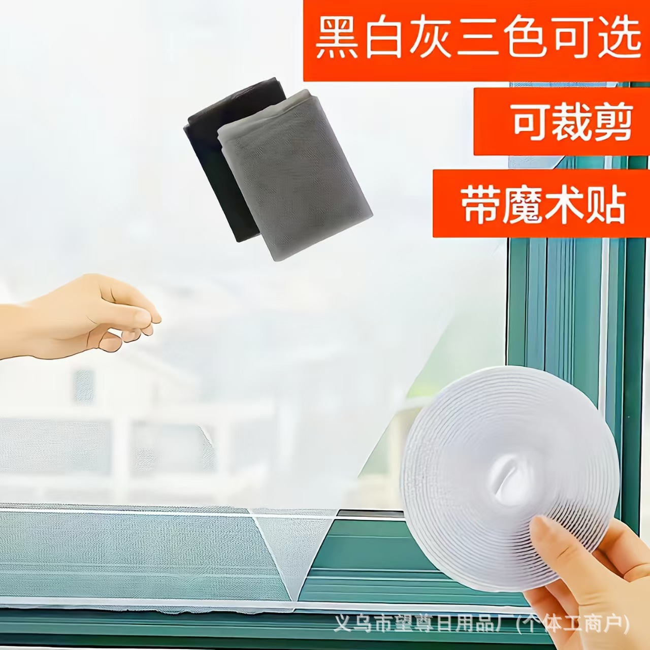 粘着式ポリエステル防蚊黒、白、グレー 3 色 DIY。防蚊家庭用ガーゼ目に見えない簡単な取り付けベルクロ