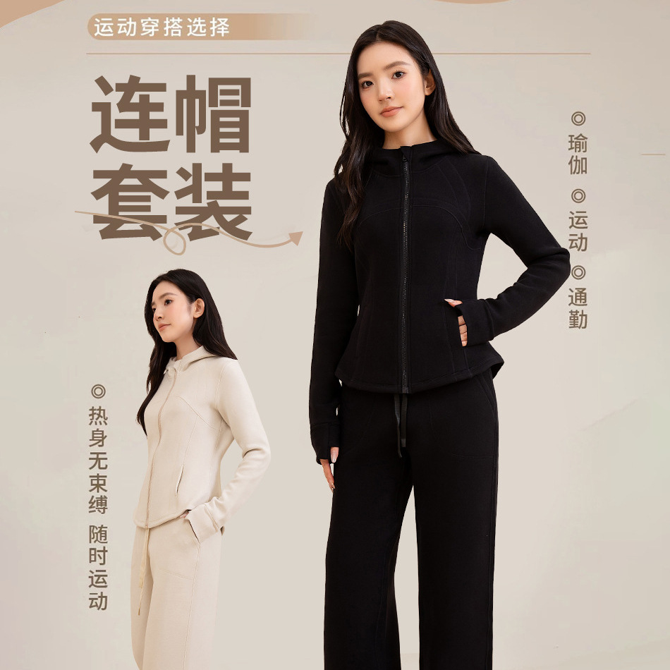 lulu同款秋冬加厚连帽小蛮腰修身套装防风外套休闲百塔运动休闲