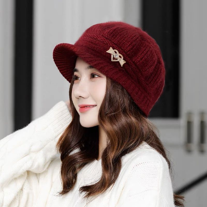 秋と冬の新しい高齢者帽子ニットカジュアルファッションおばあちゃん帽子中高年厚みのあるベルベット暖かいウールの帽子