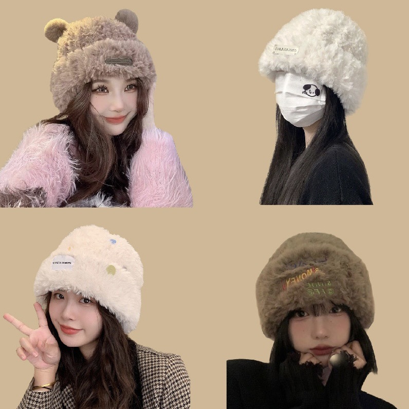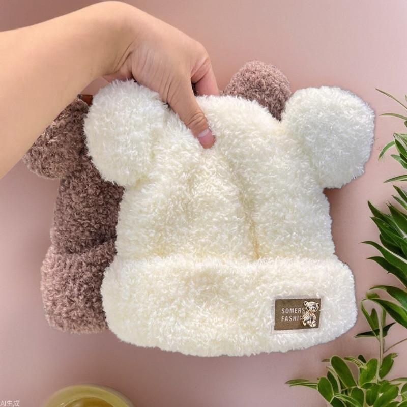 韓国の金属の熊の毛の帽子の女性のかわいい耳の秋の冬の厚い柔らかいモチとした保温の防寒の頭の帽子の漫画