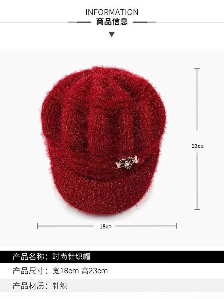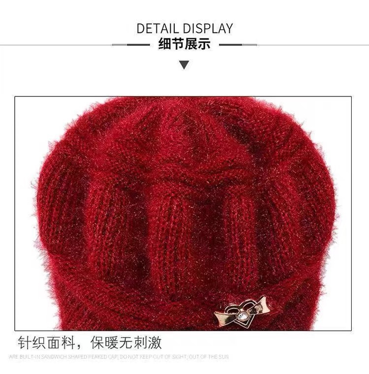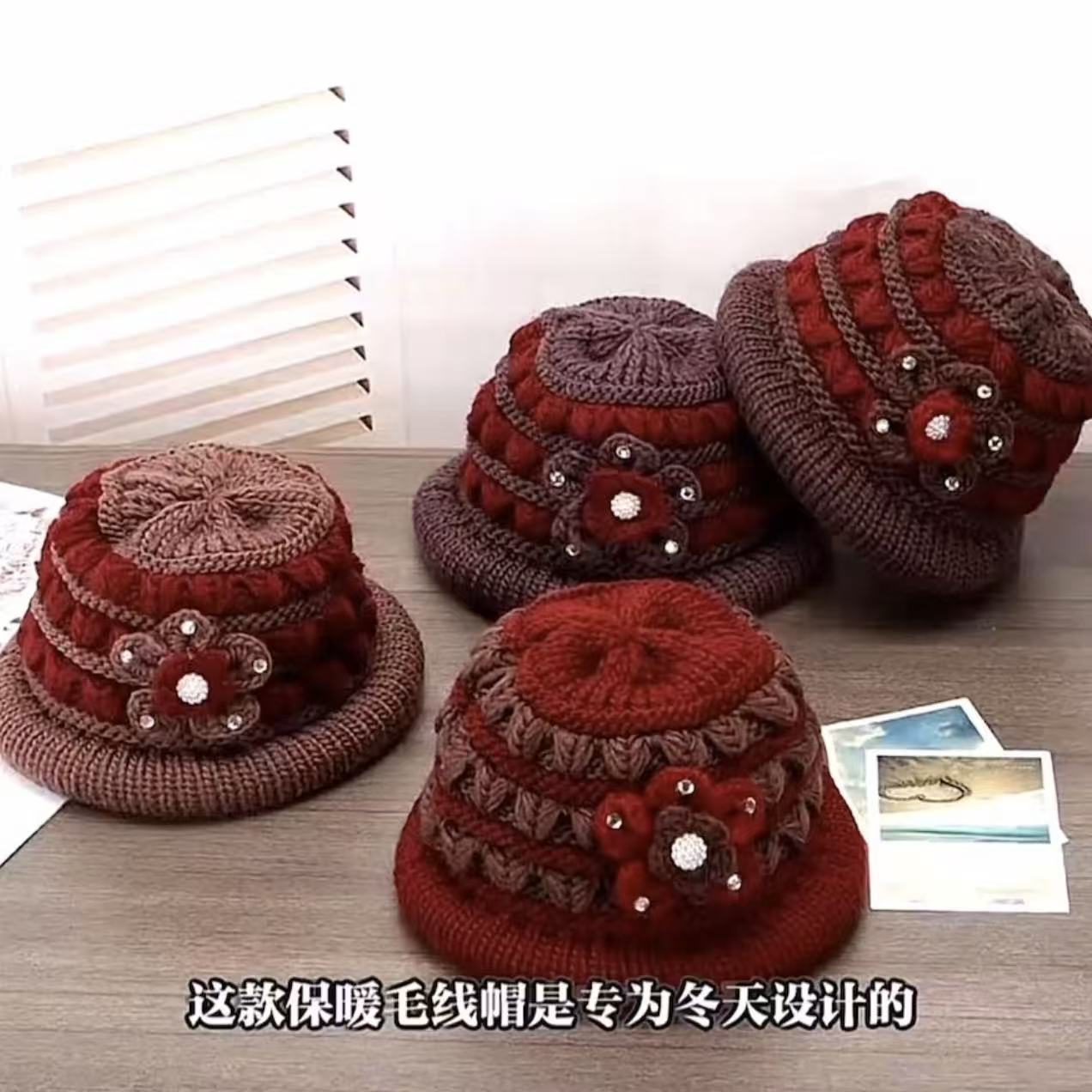 冬季时尚老人加绒奶奶加厚保暖女士针织毛线帽妈妈中老年帽子