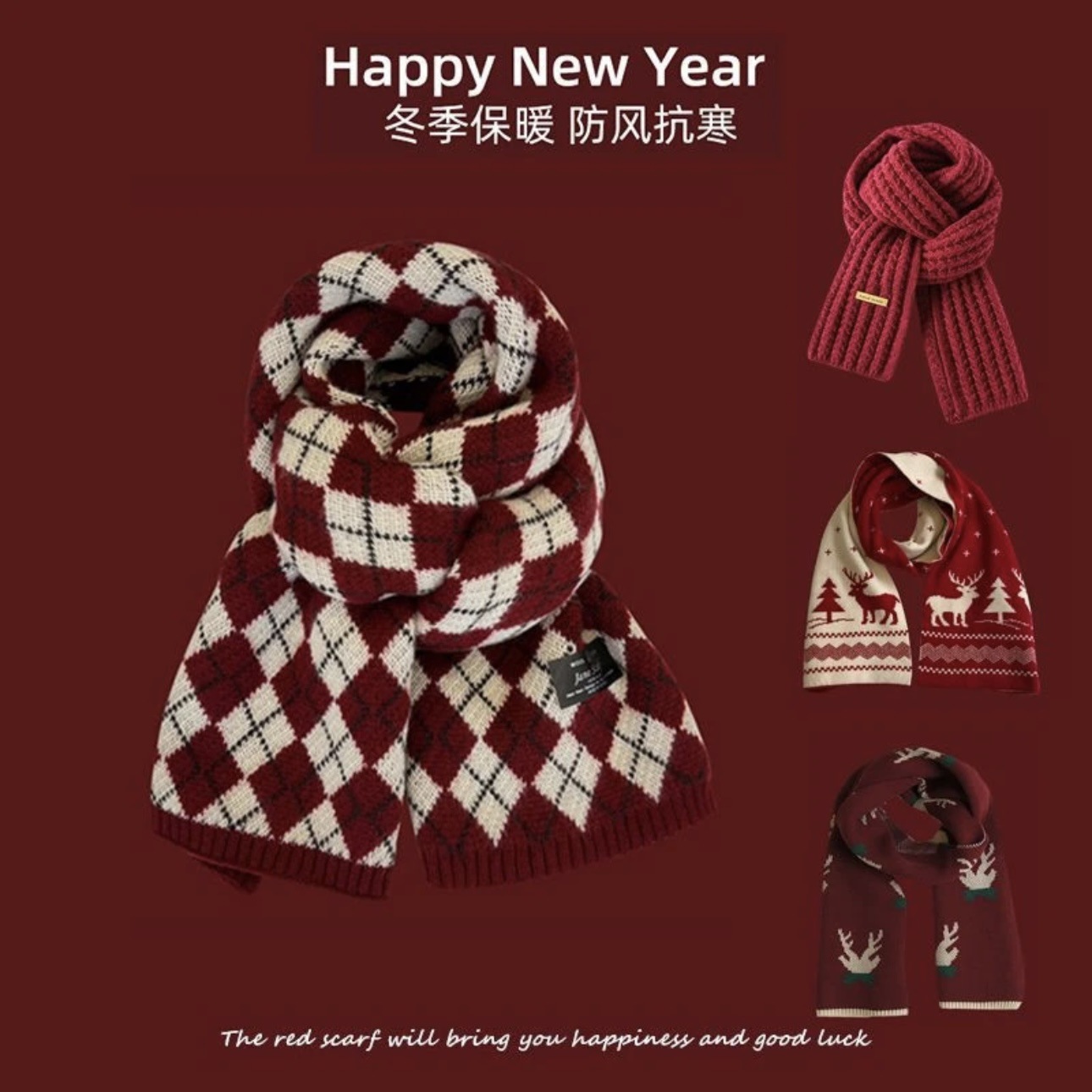 祝日の赤いニットのクリスマスのマフラーの韓国系はカシミヤのヘラジカの首をまねて冬に入ります。