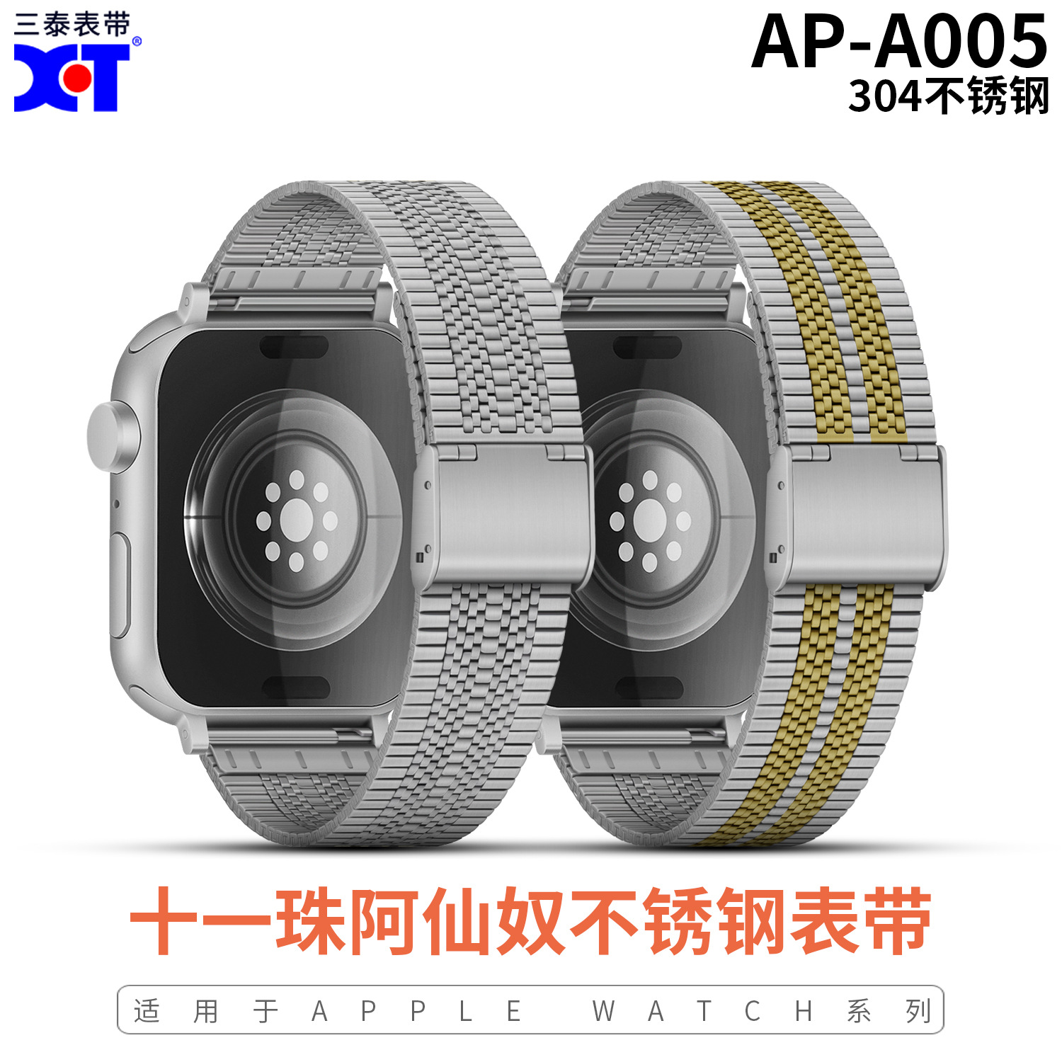 适用AppleWatch678910苹果Ultra2阿仙奴十一珠不锈钢带手表带4246