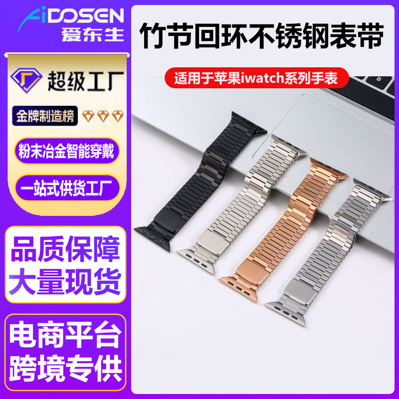 竹の節の磁気吸引リングの鋼帯はリンゴのiwatch6世代の新型SE金属のステンレスの磁気吸引の腕時計のバンドを適用します。