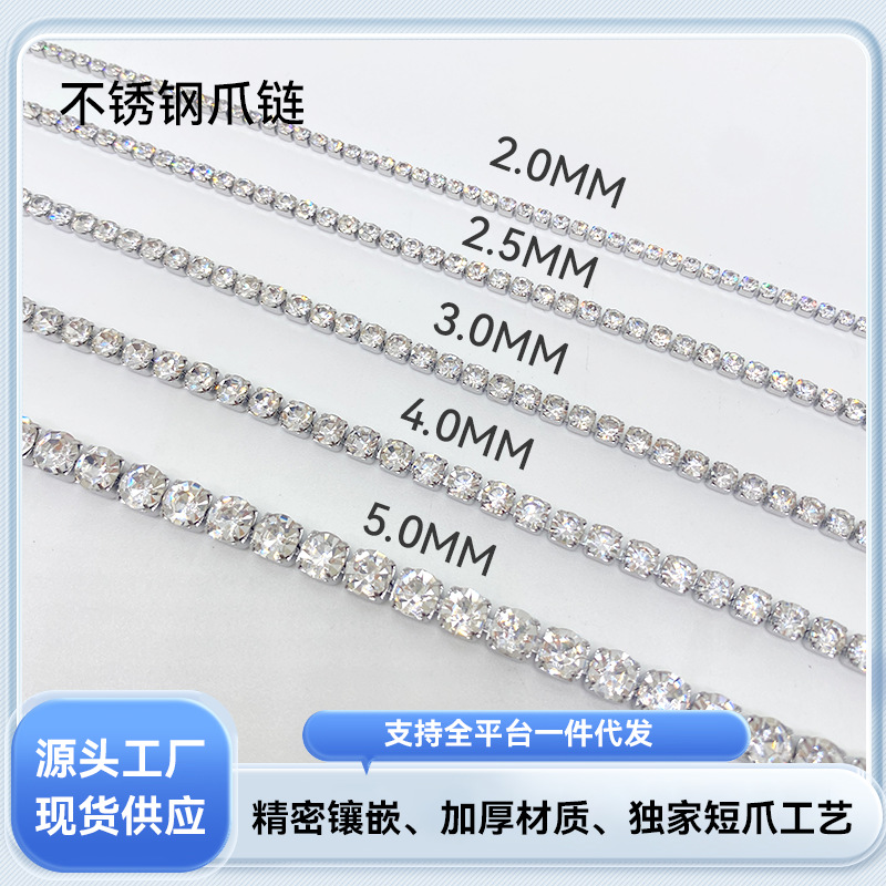 ステンレス鋼ダイヤモンド爪チェーンスーパーフラッシュラインストーンチェーンジュエリーアクセサリー DIY ネックレスブレスレットアクセサリー素材は色あせません