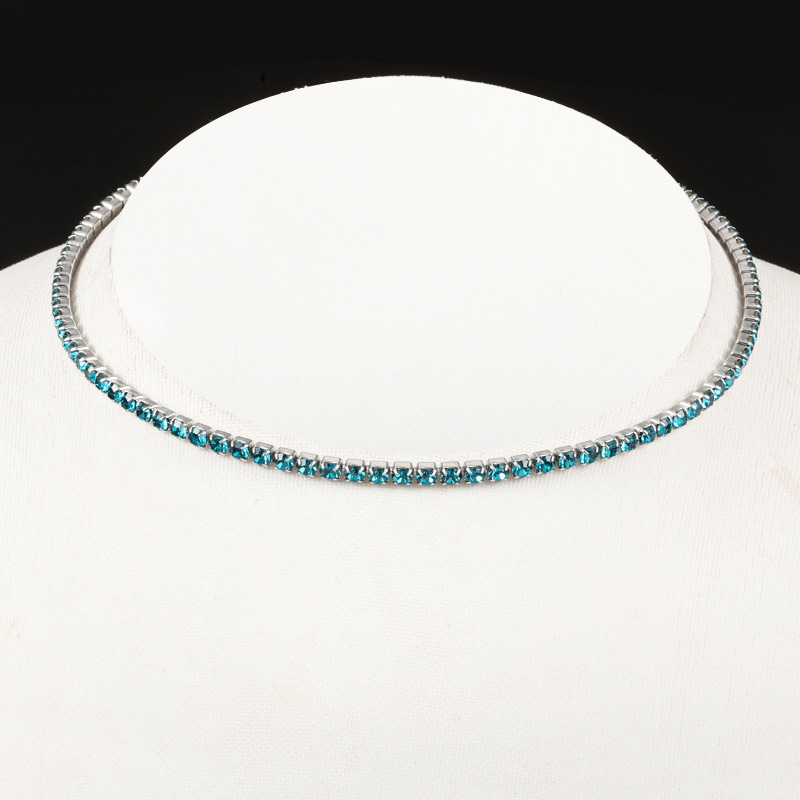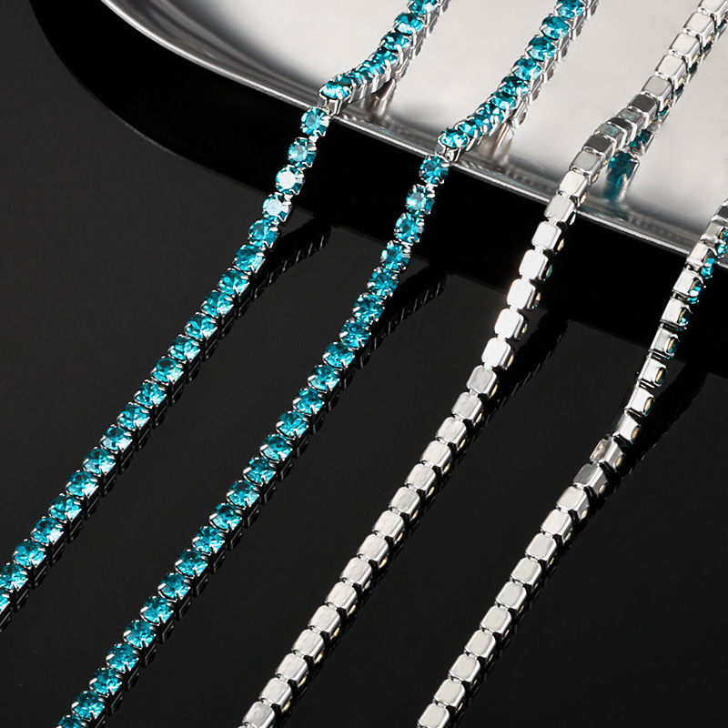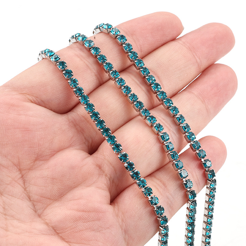 スチールカラー ピーコックブルー ラインストーンチェーン 幅3mm