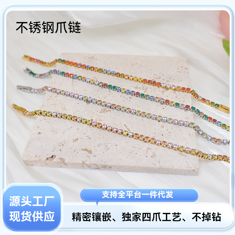 クロスボーダーの人気テニスチェーンのカラードーパミンのレトロなジルコンのブレスレットのステンレスの爪のチェーンのテニスチェーンは色が落ちません。