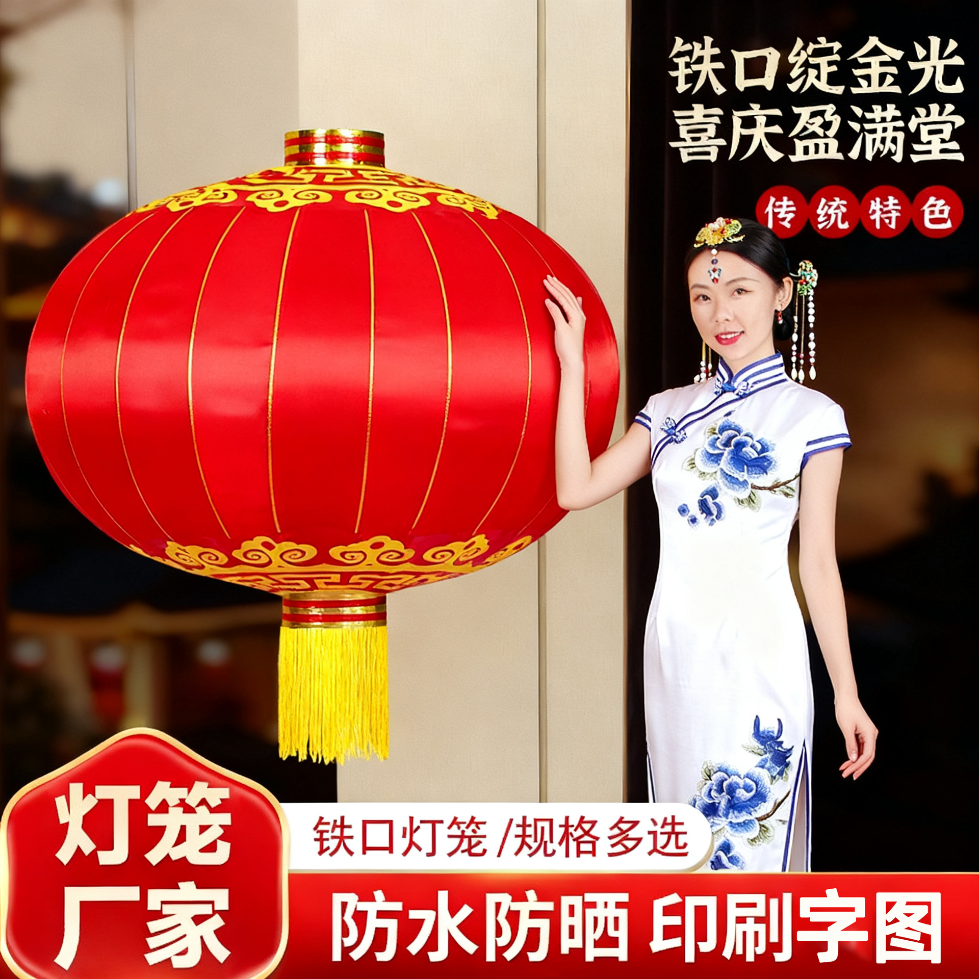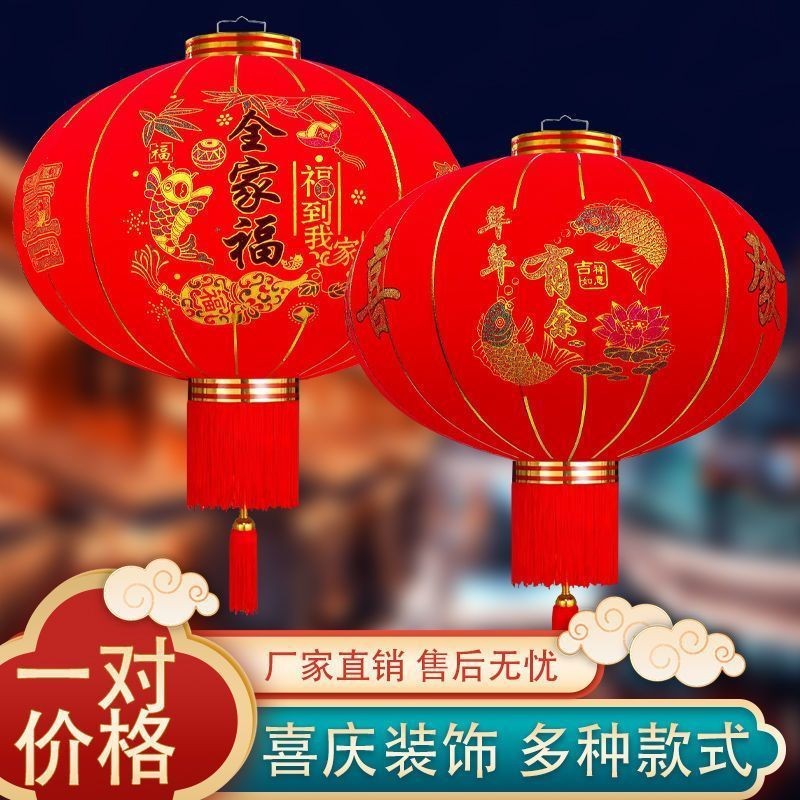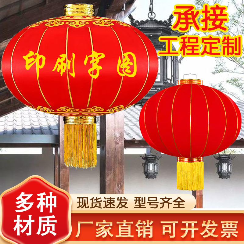 春节大红灯笼新年铁口绸布灯笼植绒灯笼户外防水印字广告灯笼批发