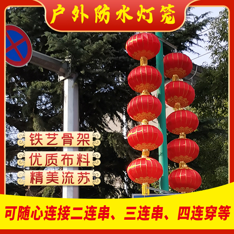 灯竿提灯屋外防水春節路灯竿提灯支柱三連提灯鉄口絹織物大紅提灯