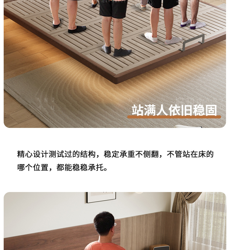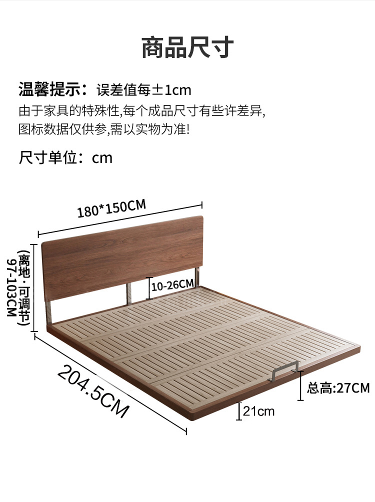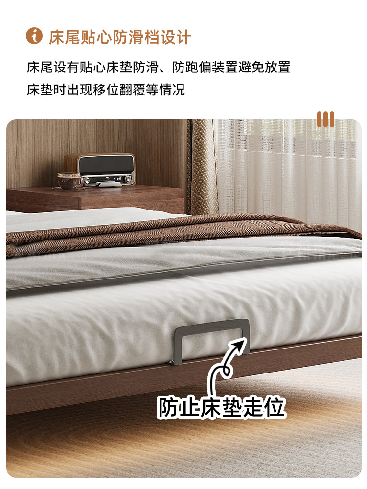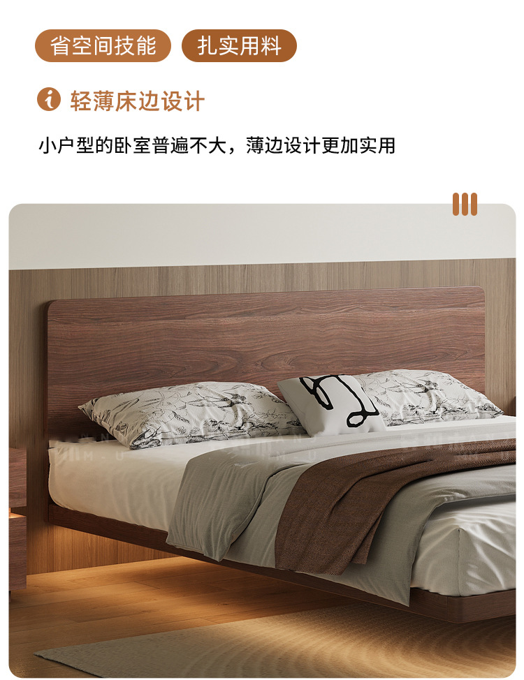 胡桃木无床头悬浮床主卧榉木排骨架床全实木省空间榻榻米无靠背床