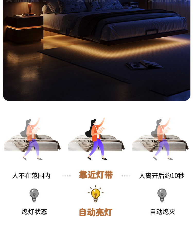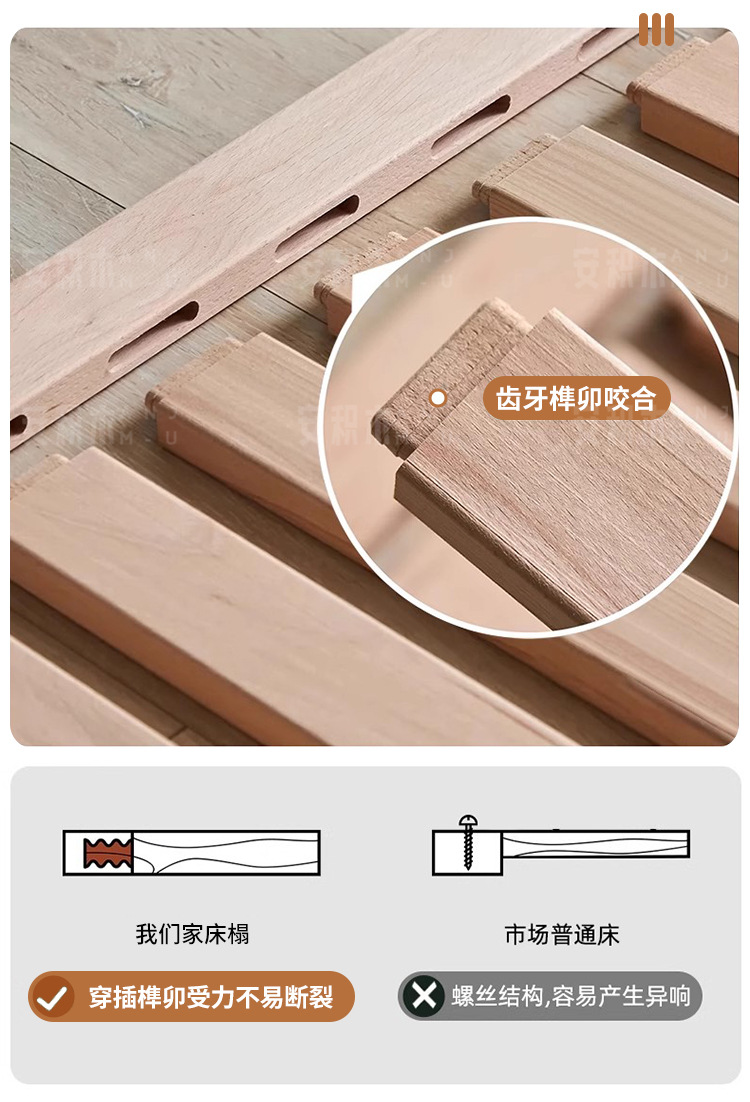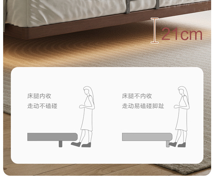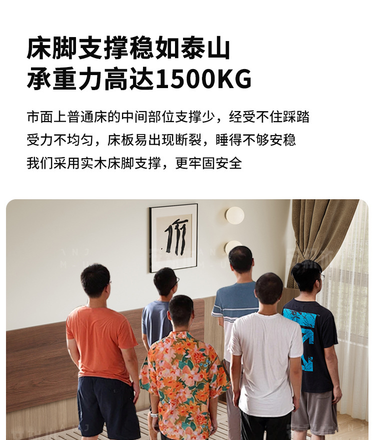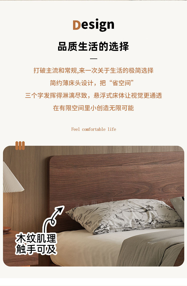 胡桃木无床头悬浮床主卧榉木排骨架床全实木省空间榻榻米无靠背床
