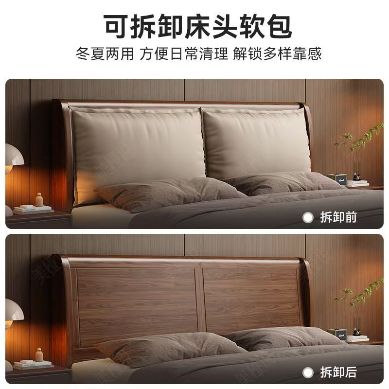 北美黑胡桃实木床1.8米主卧双人床1.5米家用简约婚床软靠可拆卸床