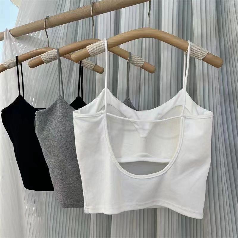 趙露思同項の白いストラップのベストの女性の夏の胸のパッドのブラの純粋な欲風のU襟の修身はやせている短い上着を現します。