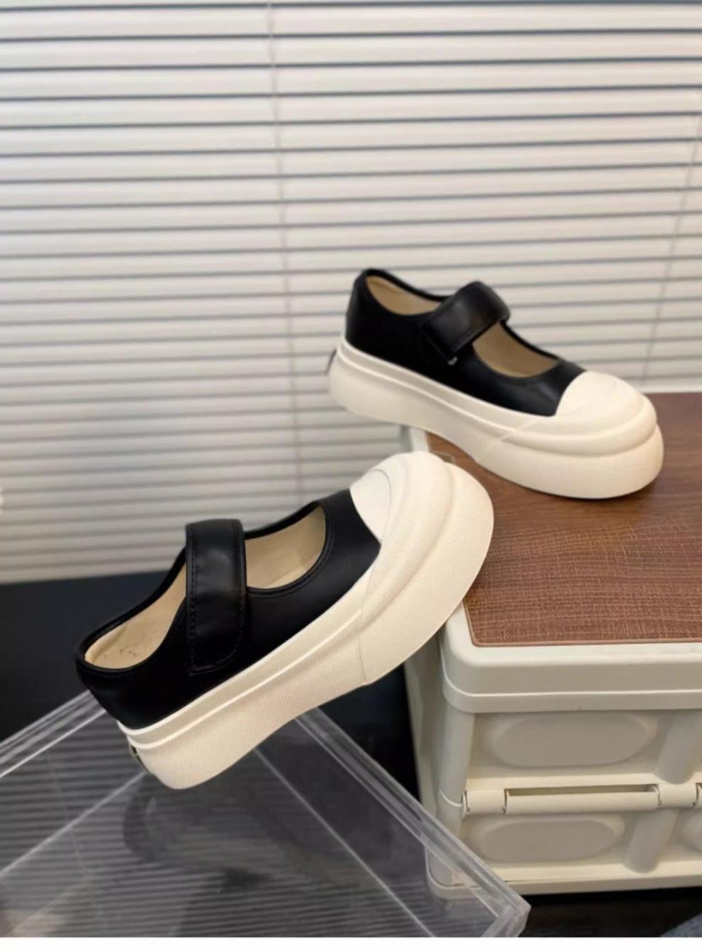 韓系の厚い底の白い靴の女性の2024夏の新型のマジックは百合のキャンバスの靴の復古のメアリー珍のカジュアルな靴を貼ります。