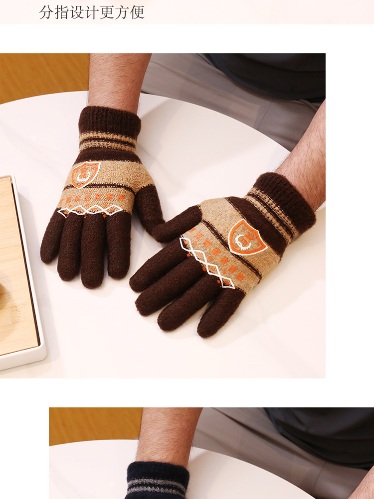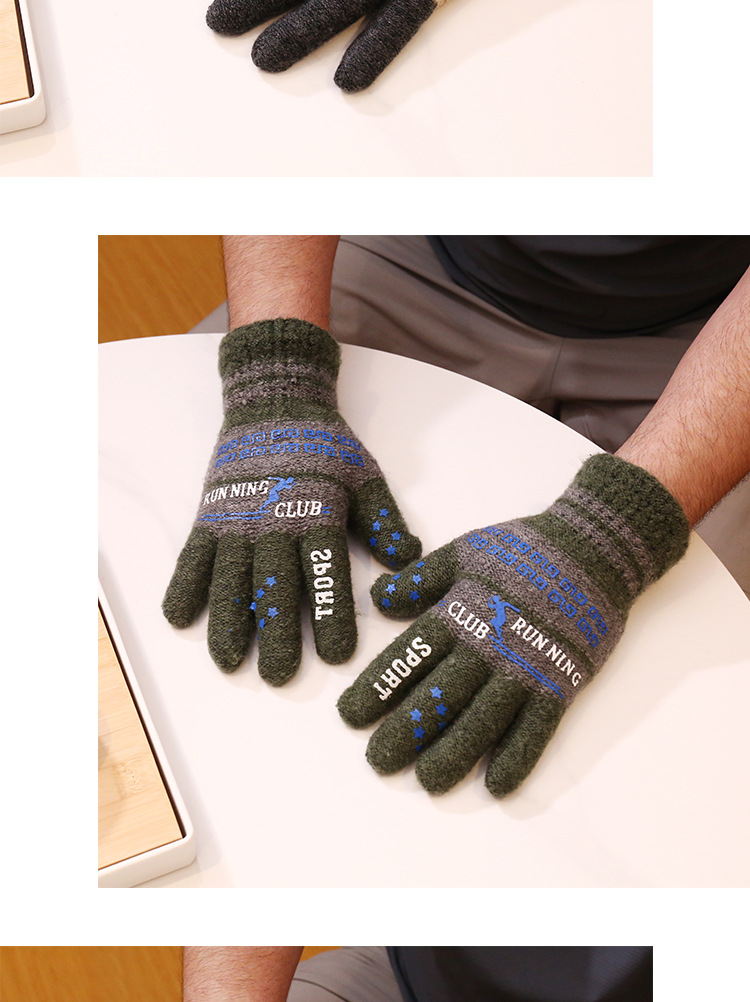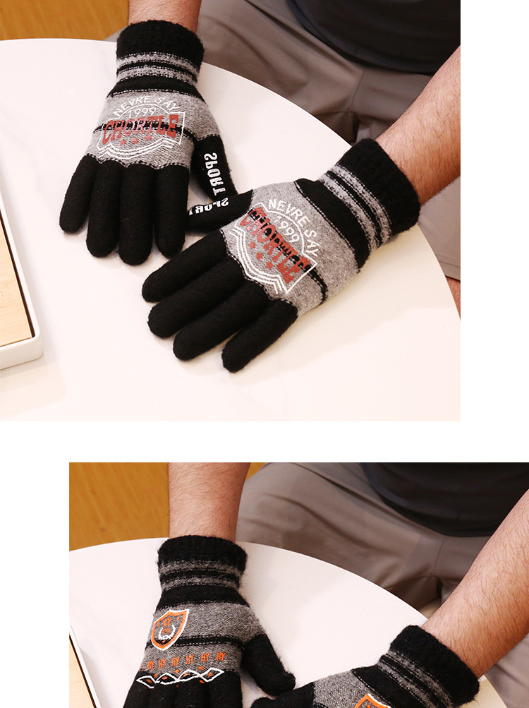 马海毛男士胶印针织手套保暖全指骑行户外运动出行冬秋季成人手套