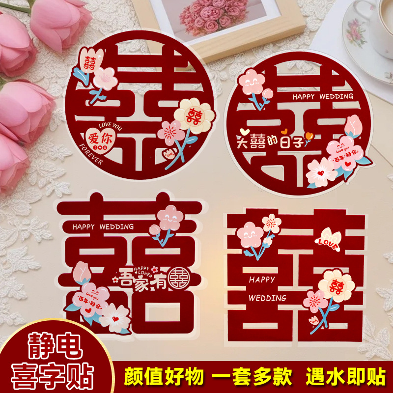 結婚小喜字ネット赤不乾性喜字シール喜糖箱卵風船喜字シール結婚室装飾卸売り