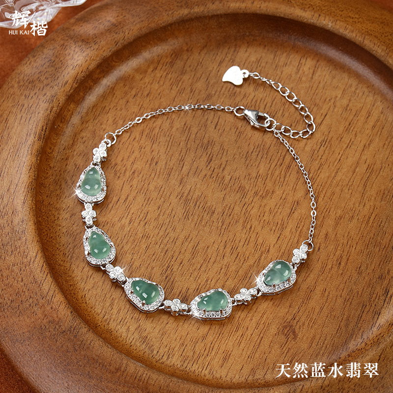 天然の青い水の翡翠の危険な材料のヒョウタンのブレスレットの純銀のs925国の潮の風は爆発して精巧で高級なチェーンの軽くて豪華です。