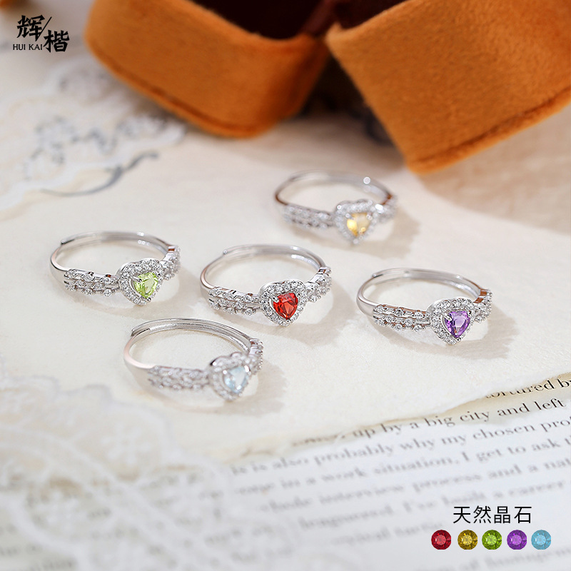 彩宝天然結晶石開口指輪女S925純銀小衆デザイン愛の指輪は気質の手飾りを調節できる