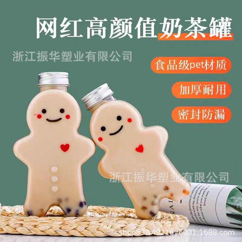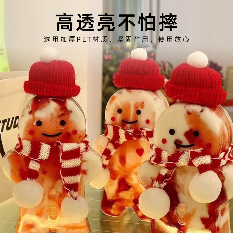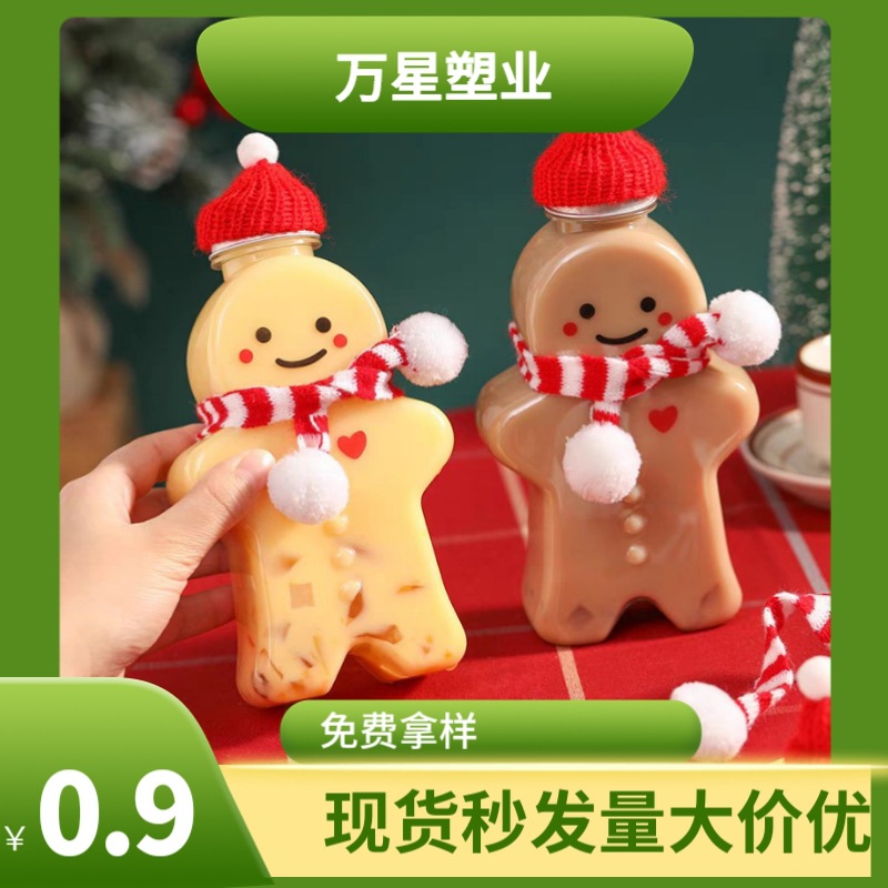 漫画ジンジャーブレッドマンミルクティーカップ特殊形状ペットボトル使い捨てジュース飲料ボトルクリスマスペットテイクアウトミルクティーボトル