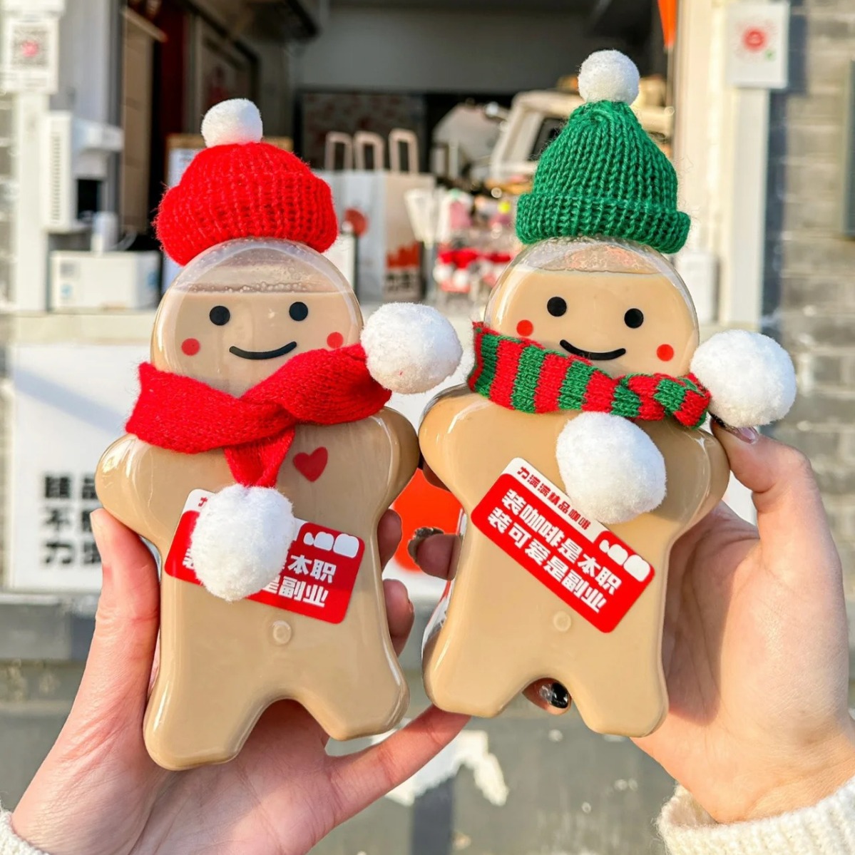 漫画ジンジャーブレッドマンミルクティーカップ食品グレード使い捨てジュース飲料ボトルクリエイティブクリスマステイクアウトジュース哺乳瓶