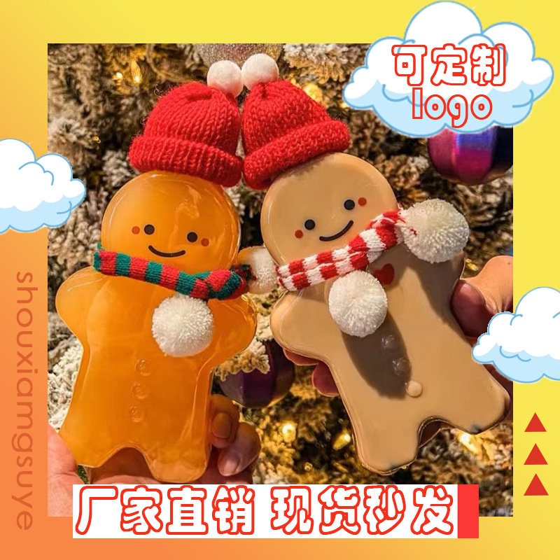 クリスマスクリエイティブ姜パイ人ペットボトル500mlpet透明使い捨て哺乳茶瓶かわいいアニメ飲料カップ