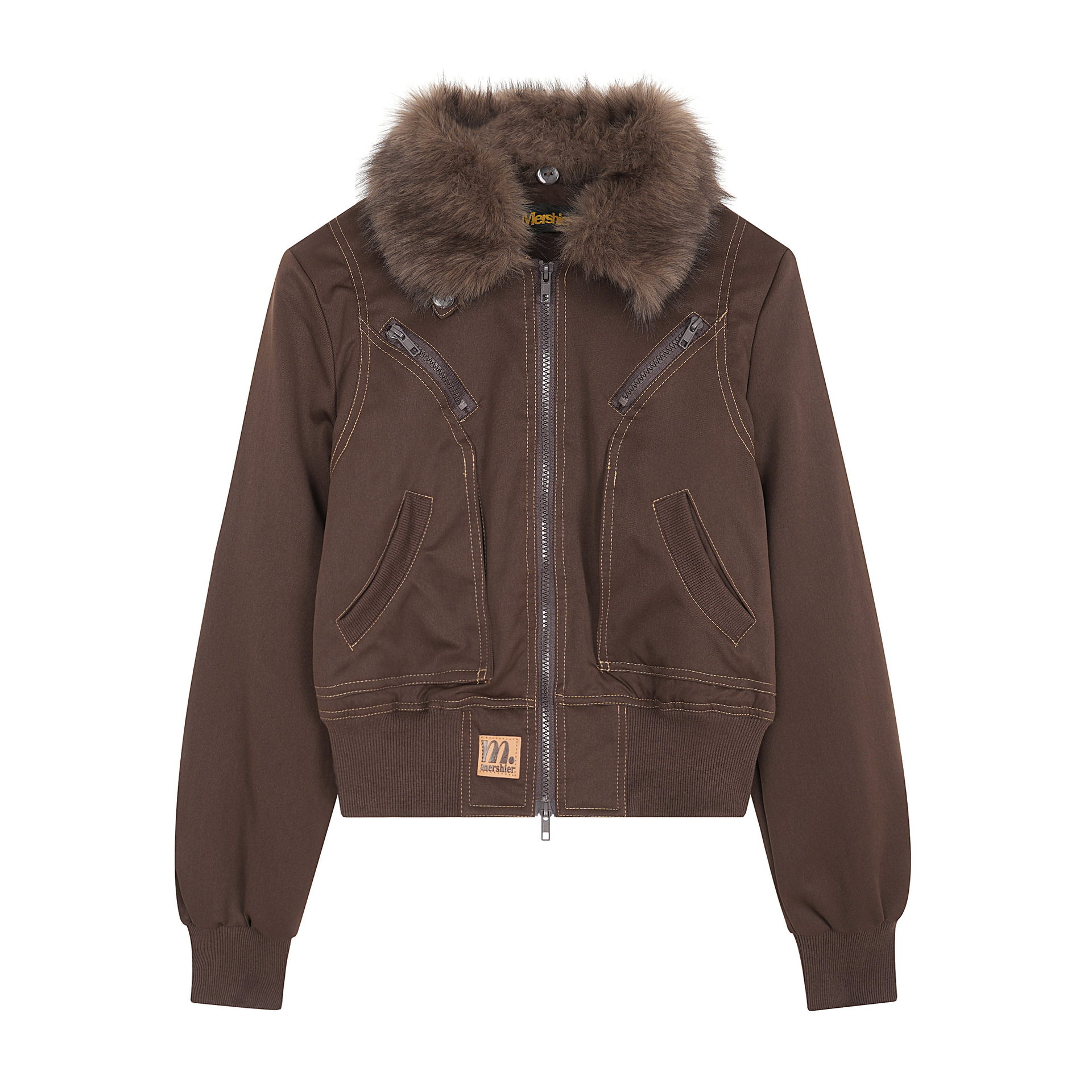 2025秋季新款美式复古毛领明线夹棉夹克男女宽松休闲短外套潮