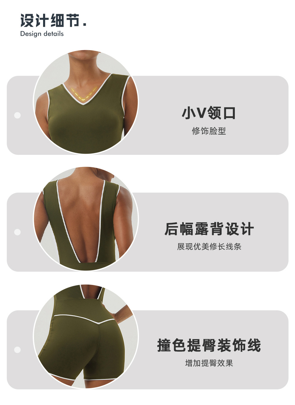国境を越えた新型の大露背中の色合わせヨガの連体服v型のヒップアップの連体の半ズボンの運動のフィットネスの服は胸のパッドを持ちます。