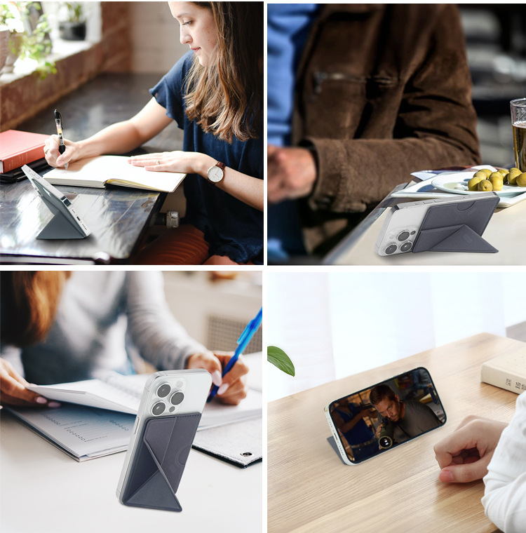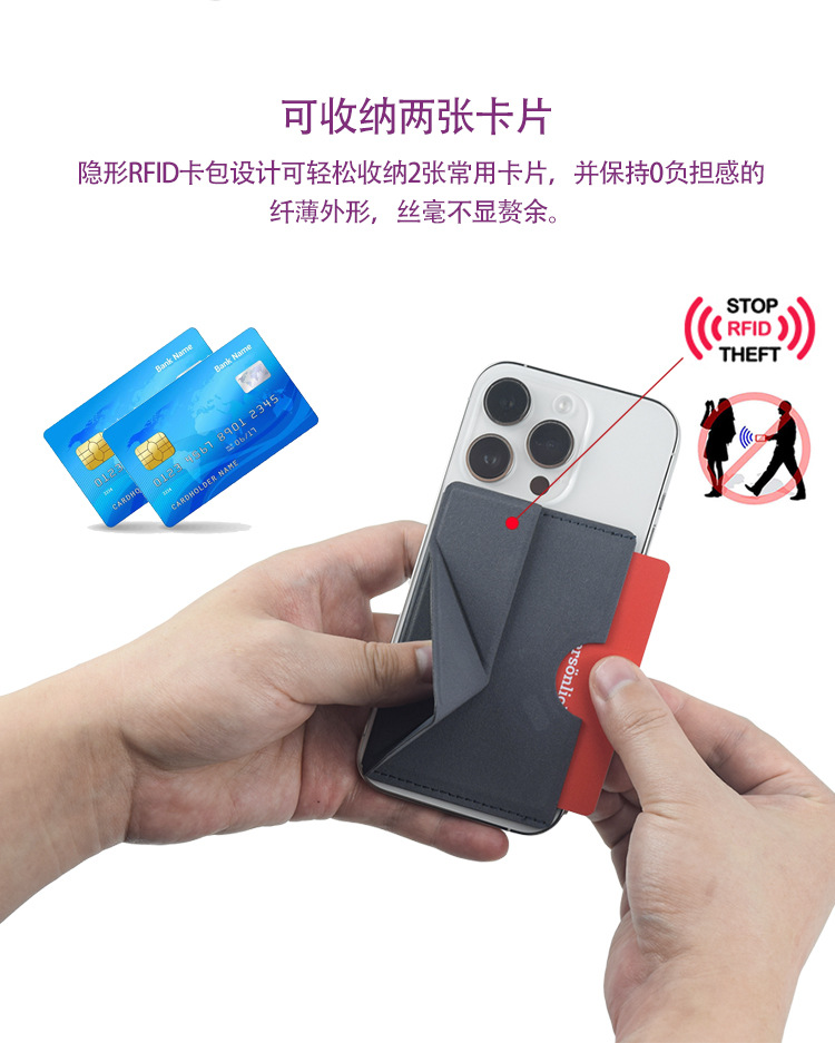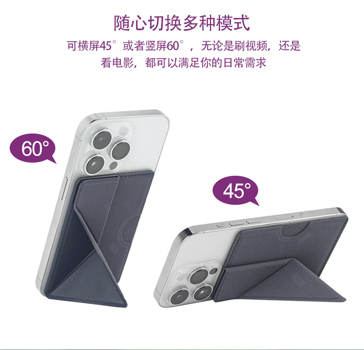 现货苹果手机带金属支架磁吸卡包 简约皮革可插卡iPhone防磁卡套