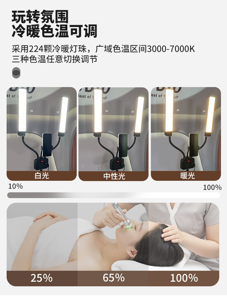 跨境45W/50w双臂灯美容灯直播摄影手机自拍美颜补光灯双管冷光美