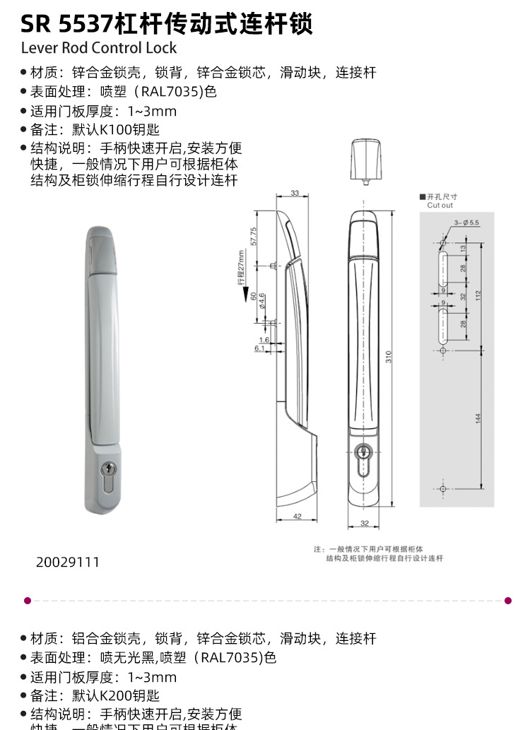 ESSENTRA益昇華メーカー電気キャビネットドアロック電気キャビネットドアロックSR 5537レバー伝動式レバーロック