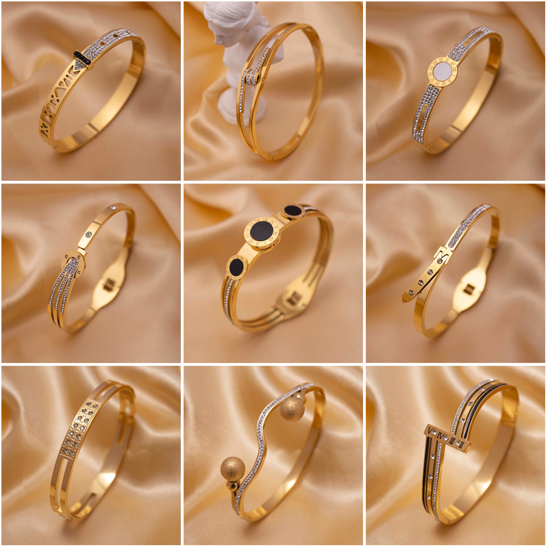 工場直販クロスボーダー卸売18Kゴールドハイエンドレディースチタン鋼非退色ジュエリー在庫あり輸出チタン鋼ブレスレット