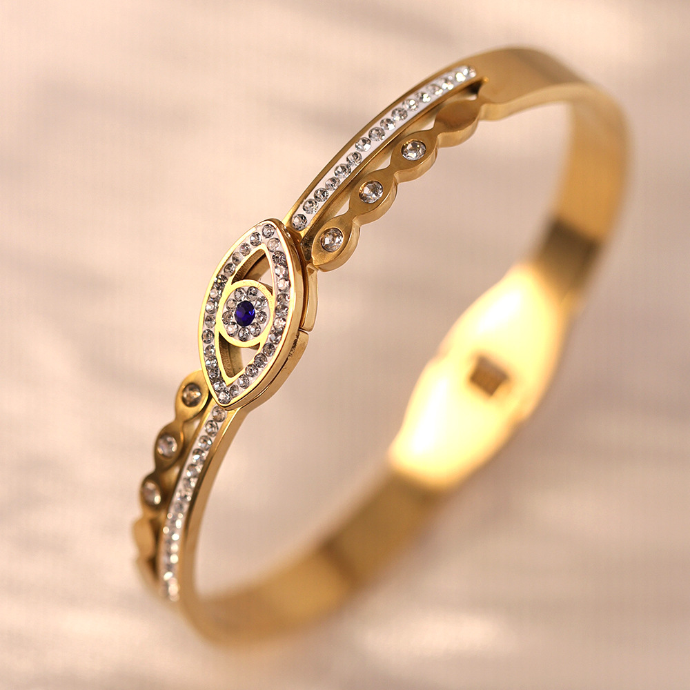シンプルな国境を越えた女性の卸売り電気金メッキ色の女性の高級感が落ちないアクセサリーの目のブレスレットチタン鋼のブレスレット