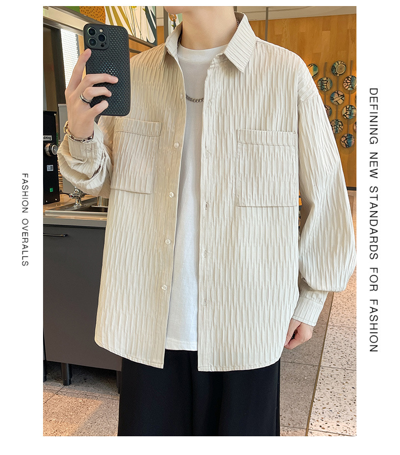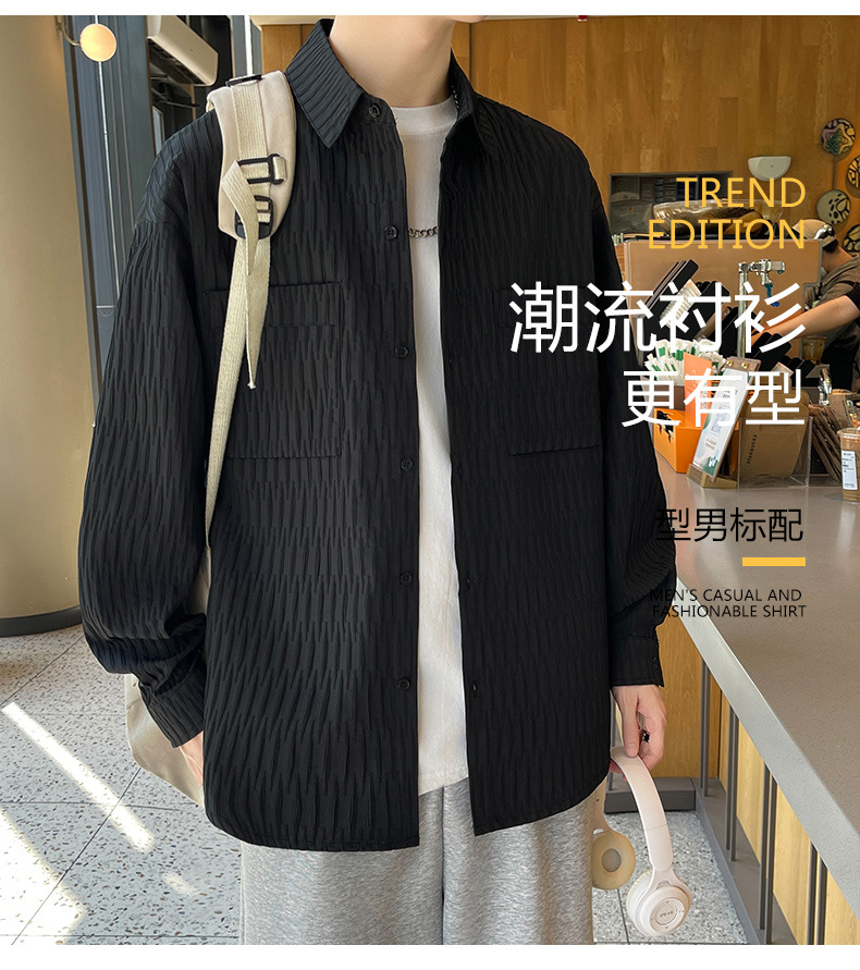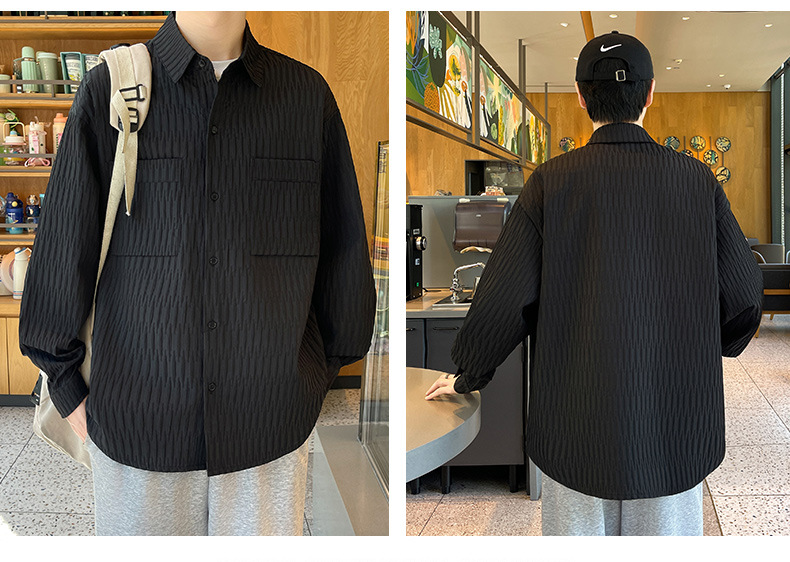 2025新款冰丝泡泡纱衬衫夏季港风痞帅百搭短袖(控价79元)