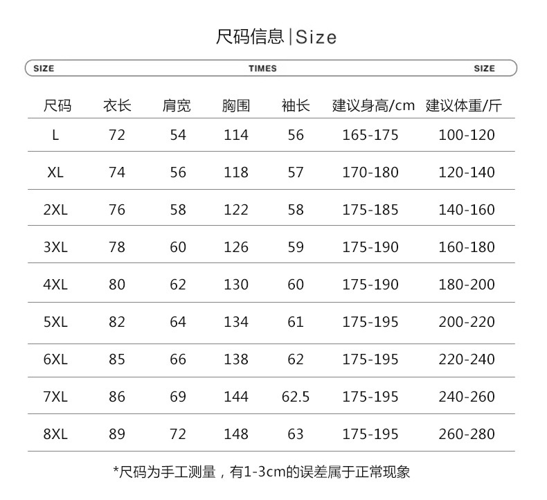 サイズ L,XL,2XL,3XL,4XL,5XL,6XL,7XL,8XL
