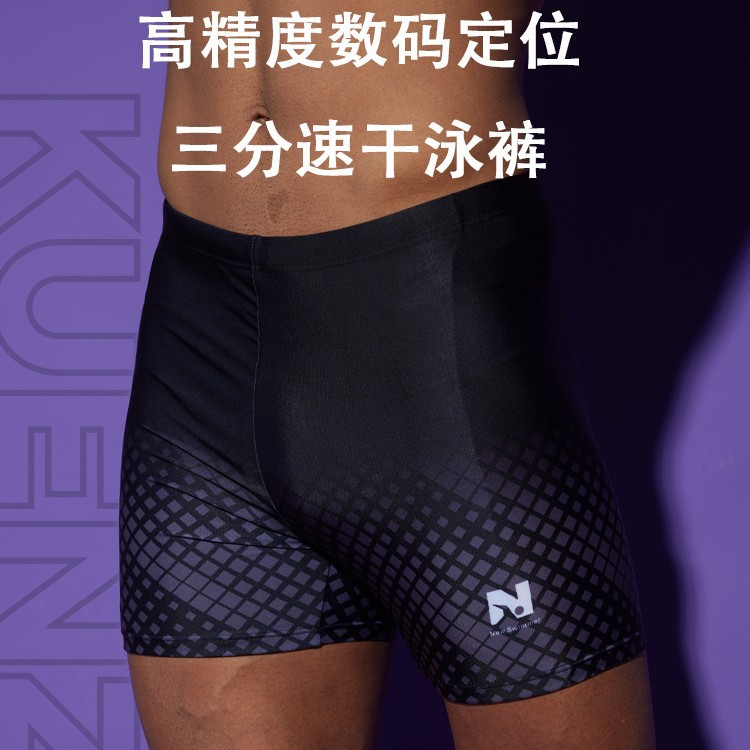 鲲梓Kuenzi新品数码印花男士专业泳裤透气批发三分温泉游泳裤