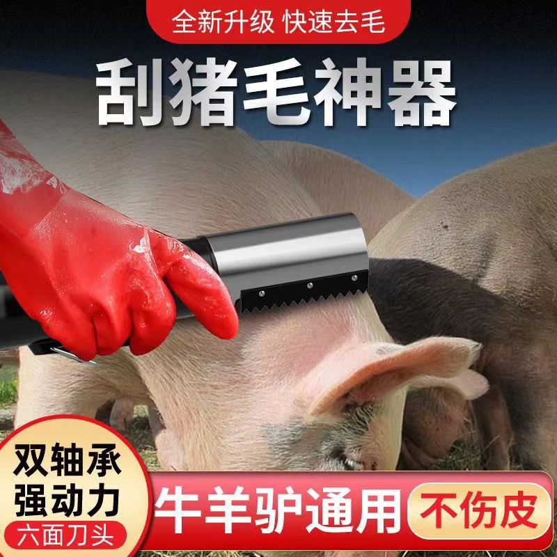 電動で豚の毛刀を剃る専用のステンレスで毛刀を抜きます。