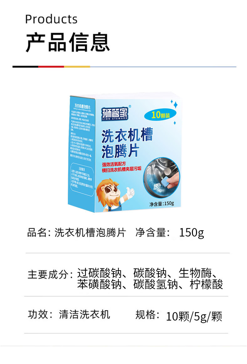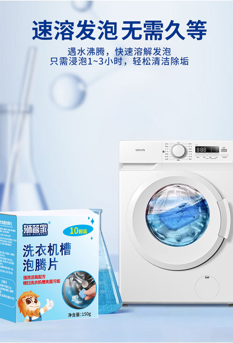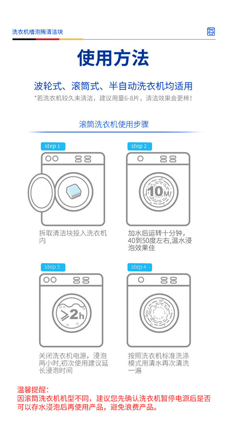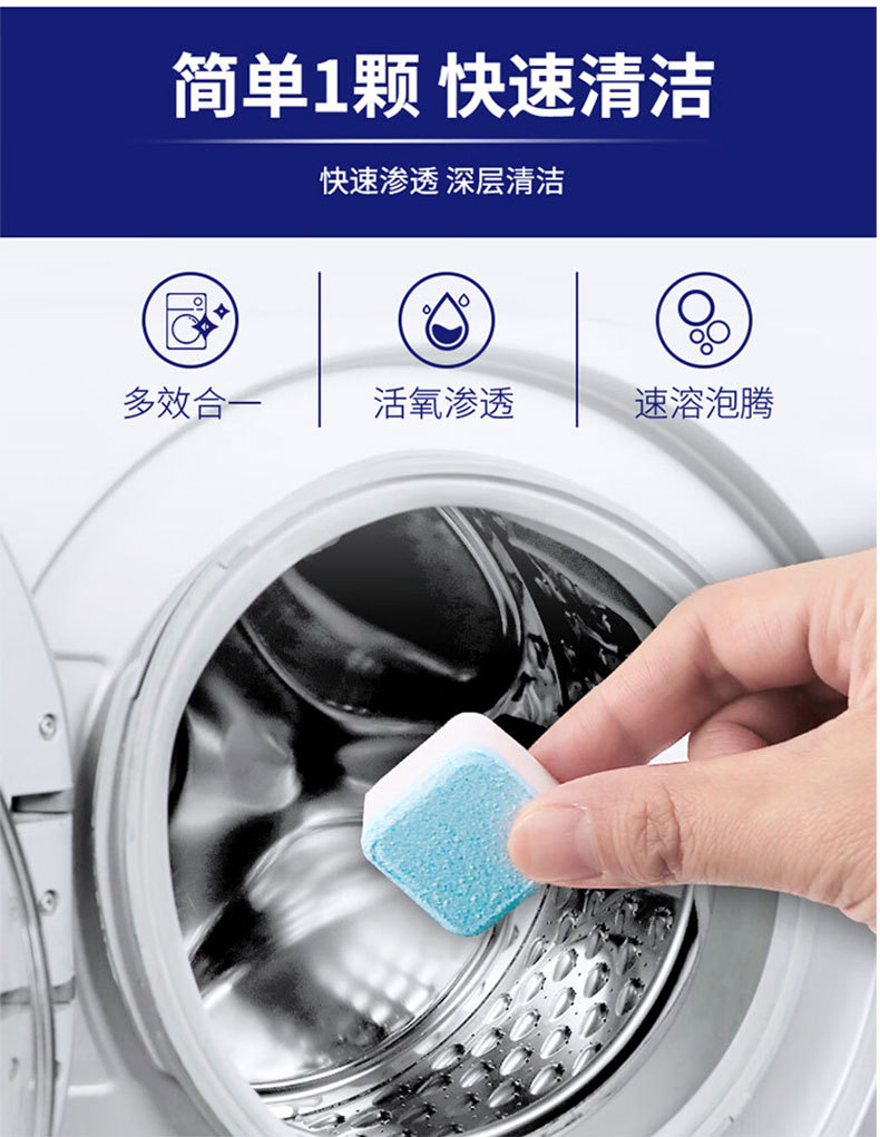 跨境洗衣机泡腾片清洗剂全自动洗衣槽除垢去污清洁片高效去渍