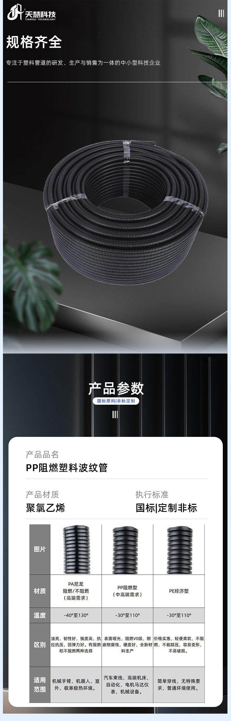 PP難燃性プラスチックベローズ