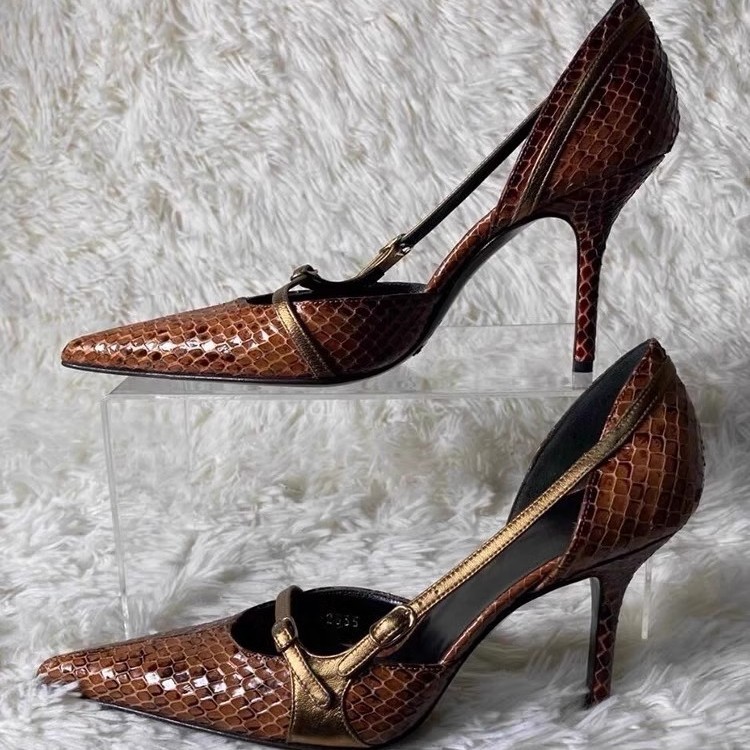 2025年夏の新型の先端の一字は浅い口の靴のファッションの小さい大衆の設計の蛇の皮の紋様の細いハイヒールの女性を持ちます。