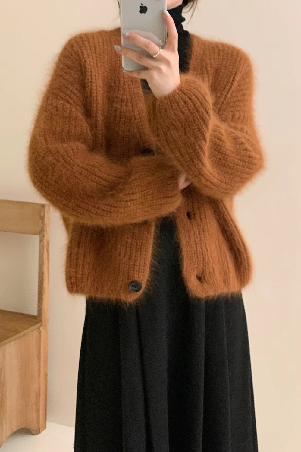 日本の優しい風vネック長袖セーターコートの柔らかいモチモチとしたミンクのニットカーディガンの通勤カジュアルな短い上着